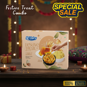 A fresh combo of Milk Khoa, Ghee Mysore Pak, and Ribbon Pakoda. Perfect for gifting, celebrations, and enjoying authentic traditional taste.